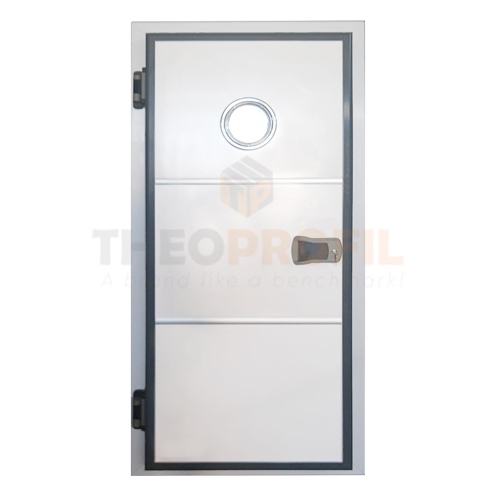 Heavy-duty hinges guarantee smooth operation and durability, supporting up to 80 kg with two hinges and 120 kg with three hinges. Adjustable vertically, horizontally, and in depth, the hinges come with a self-closing system suitable for both positive and negative temperature chambers. Optional features such as a panic lock (with internal release and two keys) and round porthole further enhance safety and functionality.